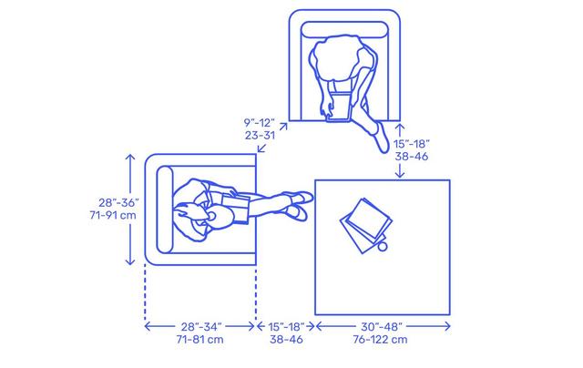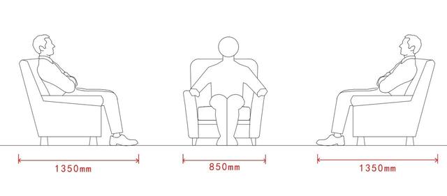 6.5.1 小型接待區一般是沙發座椅組合;椅子的尺寸:寬度0.8m~0.9m,高度0.38m~0.45m;沙發座椅與其它相鄰的臺面不應小于0.38m。