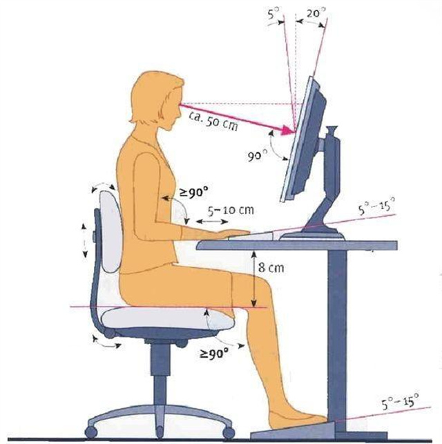 6.3.3 辦公椅應選用帶靠背和雙邊扶手的轉椅,且辦公轉椅的靠背和坐墊高度可上下調節,適合不同身高的員工使用。 椅子高度為0.38m~0.45m。