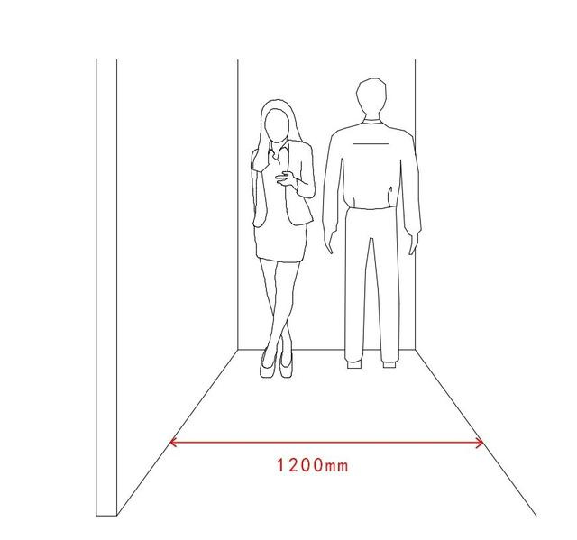 6.2.5 辦公區域兩邊墻體的通道不應小于1.2m。如該通道為消防疏散通道的應按消防規范設計。