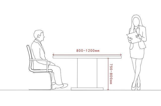 6.6.2 常規的洽談桌以圓形居多:圓形洽談桌的尺寸直徑為0.8m。部分洽談室會設計長方形的洽談桌,尺寸為1.2m*0.9m;