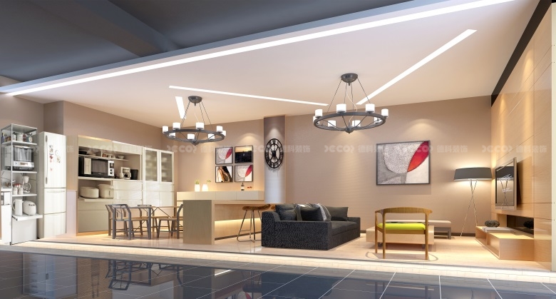 燈光設計也是實現現代簡約風格的重要一環。在有限的空間內,燈光不僅要起到基本的照明作用,還需要通過巧妙的布置來提升空間的層次感和氛圍。現代簡約風格的燈光設計通常采用簡單、自然的燈光布局,通過間接照明、重點照明和局部照明的結合,創造出溫馨、舒適的環境。避免使用過于炫目的燈光效果,而是注重空間的通透性和開闊感。通過燈光的合理搭配,可以使有限的空間看起來更加開闊,增強展品的展示效果,避免由于過度裝飾產生的視覺雜亂。